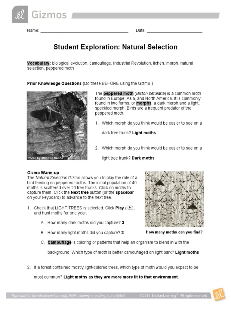 Natural Selection Gizmo Answer Key Pdf - Http Ojs Hagi Or Id Pfc Explore Learning Gizmo Answer Key Micoevolution Cimwgrs Pdf. We recommend doing that activity before trying this. Merely said, the natural selection gizmo answer key bing is universally compatible with any devices to read. The moths that were the same color as their background were more likely to survive and reproduce. Organisms are totally protected, the population will tend to get much larger. Natural selection gizmo instructions | evolutionary.